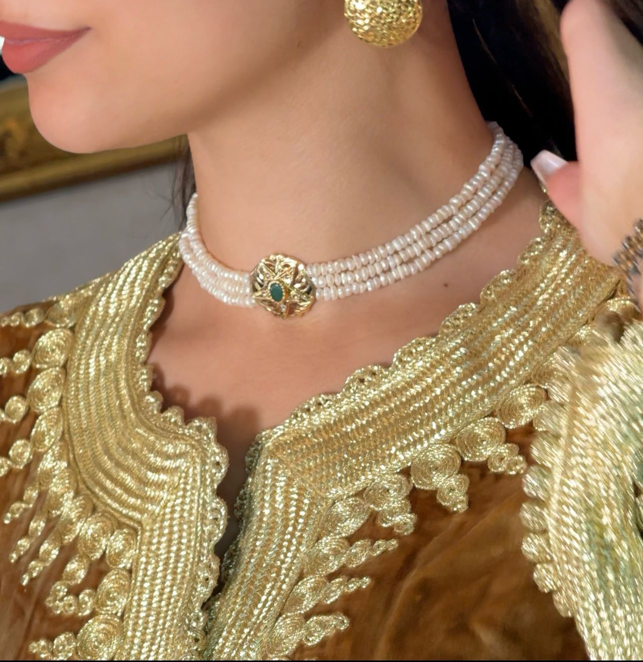 سلسلة رقبة فاخرة من الجوهر الحر والذهب الخالص – تصميم مغربي راقٍ